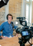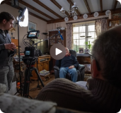 Auguste se charge de tout : il installe et met à l’aise l’interviewé tout en filmant et posant les questions.